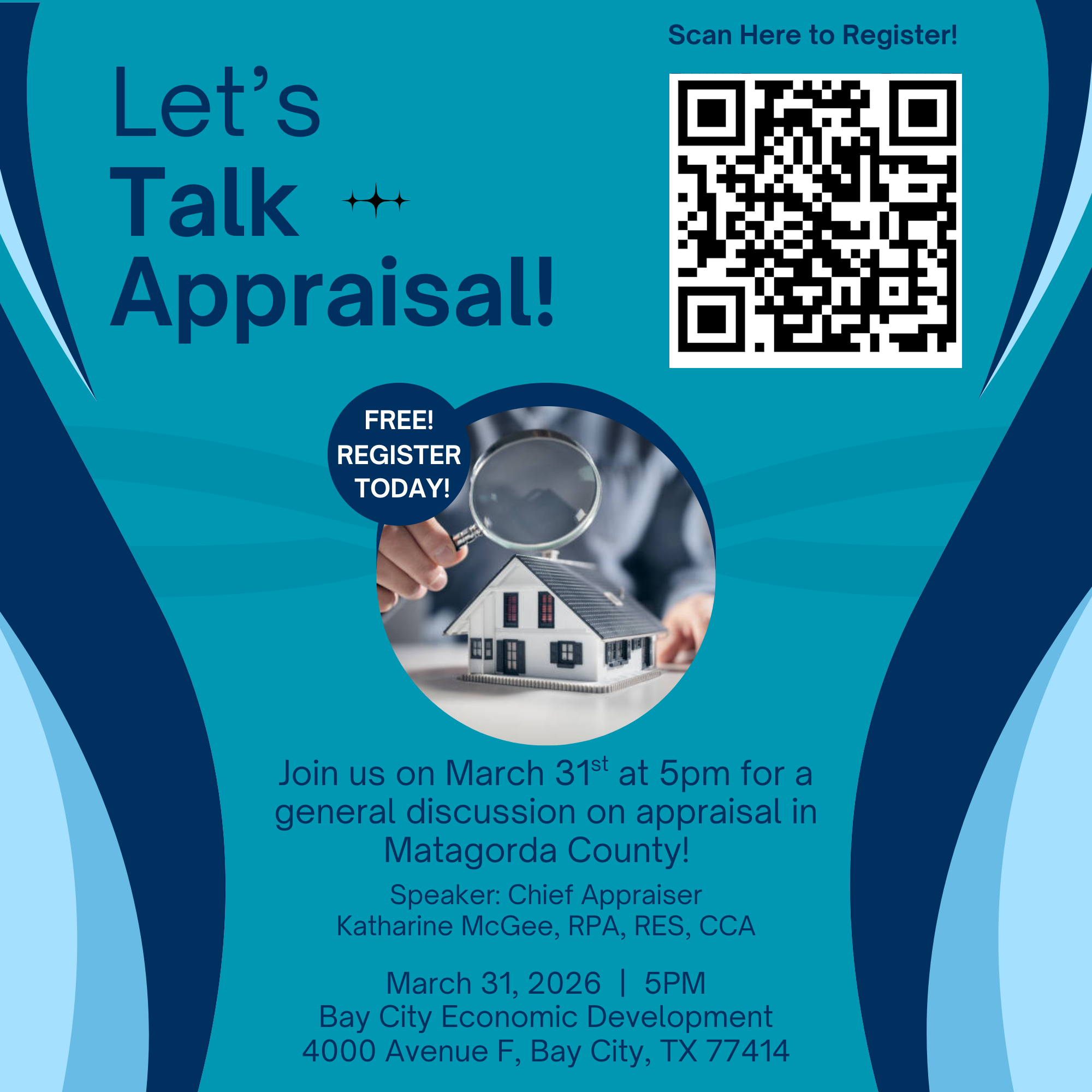 The Matagorda County Appraisal District is responsible for appraising all real and business personal property within Matagorda County. The district appraises property according to the Texas Property Tax Code and the Uniform Standards of Professional Appraisal Practices (USPAP) for properties within each of the following taxing entities: